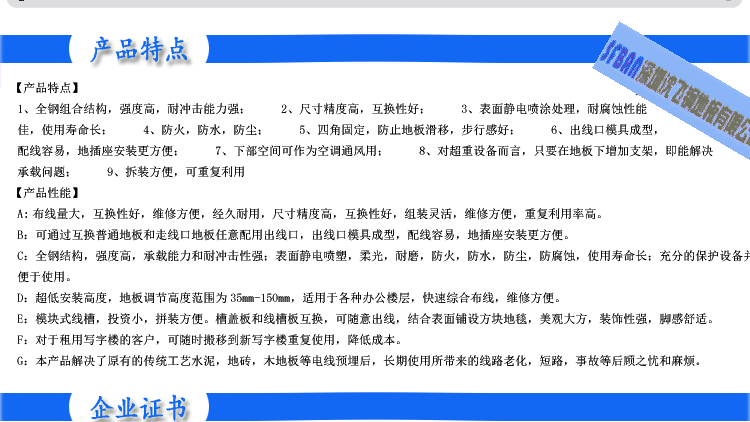 OA智能化架空活動地板(OA500) 【型號規(guī)格】 OA500×500×28 mm 【產(chǎn)品概述】 OA500智能化全鋼架空活動地板采用優(yōu)質(zhì)鋼板經(jīng)拉伸成型、點(diǎn)焊、...